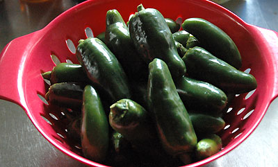 まずはハラペーニョソース作り。タバスコみたいな酸っぱ辛いソースね。