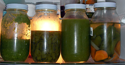 3)のペーストに、塩と酢を混ぜ、冷蔵庫で6週間寝かす。時々かきまぜるのがポイント。