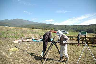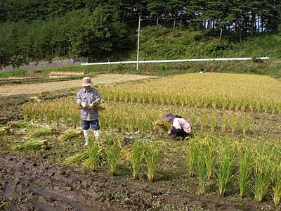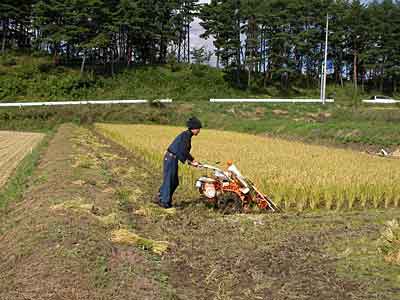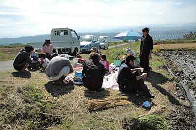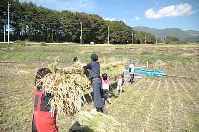 Oさんはもくもくと稲を刈ってるし、リョウコもはぜぼうの準備をしてる。