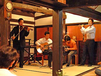 別所温泉の中心からさらに山に入ったところにある、蕎麦屋「おおにし」さんが舞台のコンサートだ。