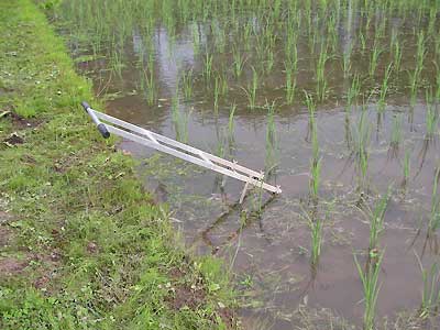 植えてから1ヶ月の間は、田んぼに入って稲の根を切っても問題ないのだけど、それより後になると成長に支障が出てしまう。