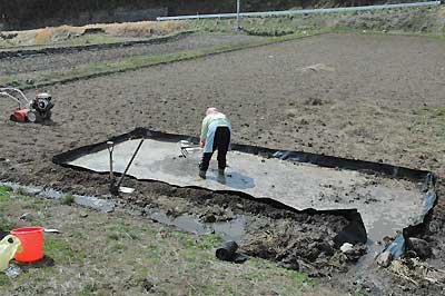 それから、水苗代作りの大仕事である「コネコネ作業&ベッド作り」を始めた。